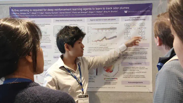 Flying animals rely on wind and odor cues to follow odor plumes, guiding them to food sources or potential mates. However, wind direction is not directly observable and animals must actively sense their environment to estimate it. How animals actively gather and integrate multisensory information to accomplish this behavior remains unclear.